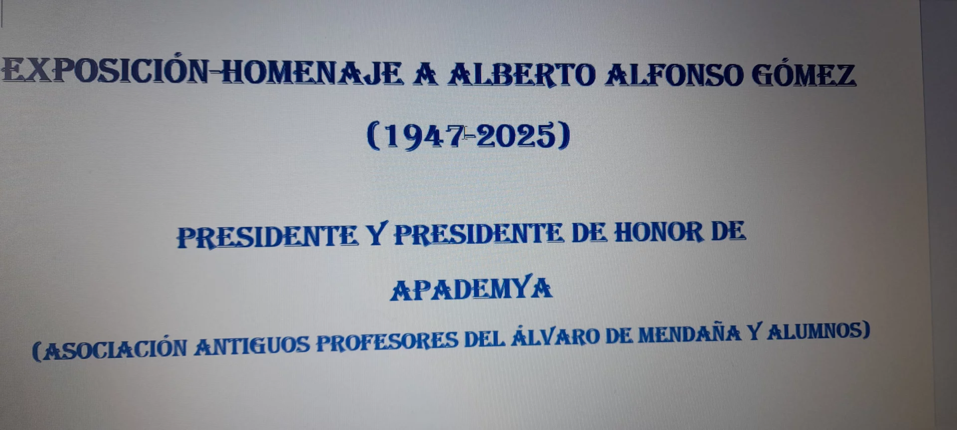 La misma existencia de nuestra Asociación y, desde luego, su desarrollo posterior, no puede ser entendida al margen de la figura de Alberto J. Alfonso Gómez, que nos abandonó a finales de noviembre del año 2025, y al que esta exposición pretende rendir un sencillo y emocionoado homenaje.
